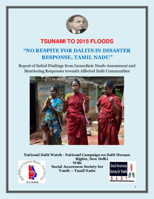 Ensuring Inclusion of Dalits during responses in Flood Affected Tamil Nadu.